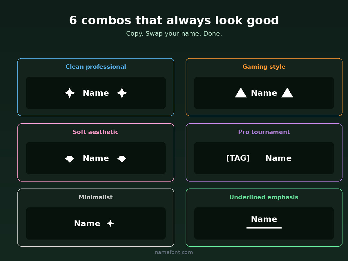 These six combinations cover 90% of what most people need. Save them somewhere, swap "Name" for whatever you're styling, done.