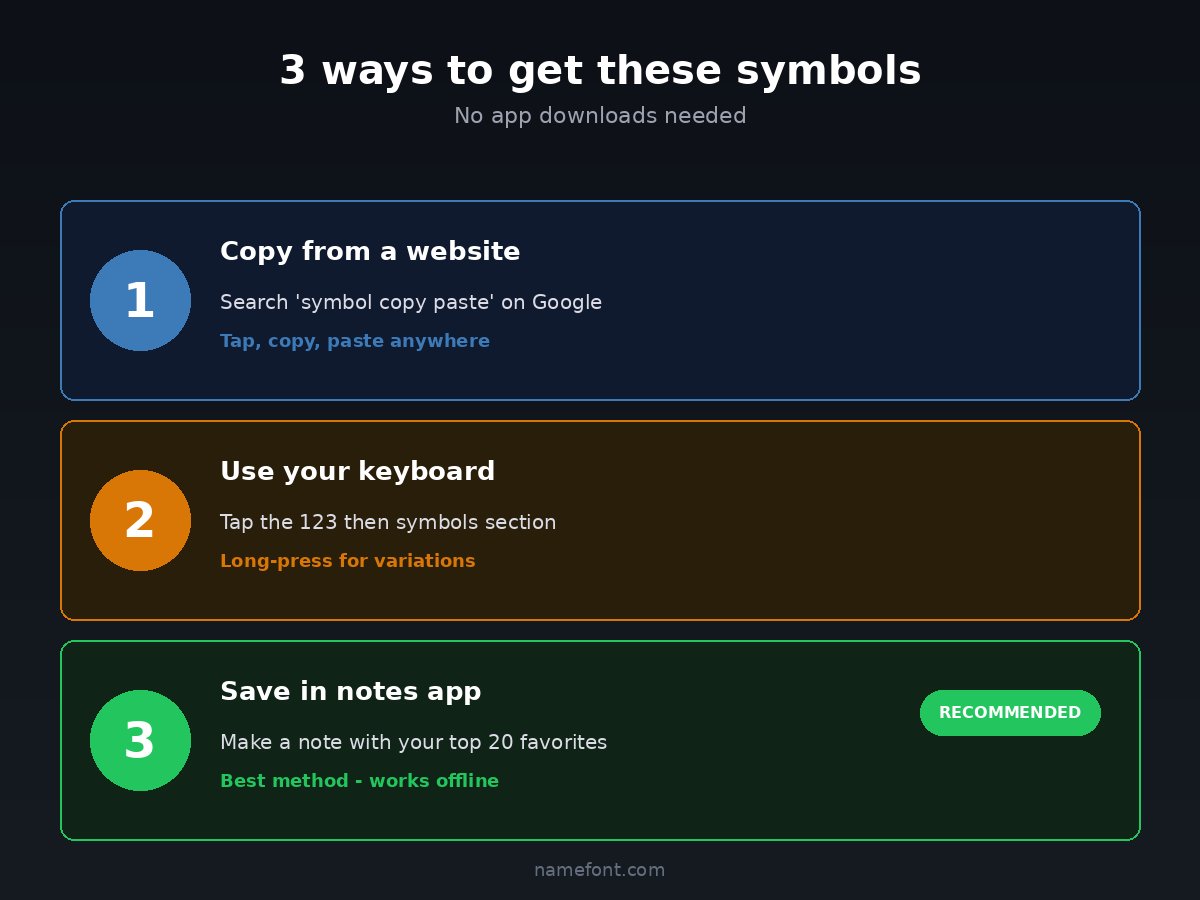 After years of figuring this out the hard way, here's the full guide. No apps to download, no shady websites, no copy-paste from random forums. Just symbols that work and how to actually use them.