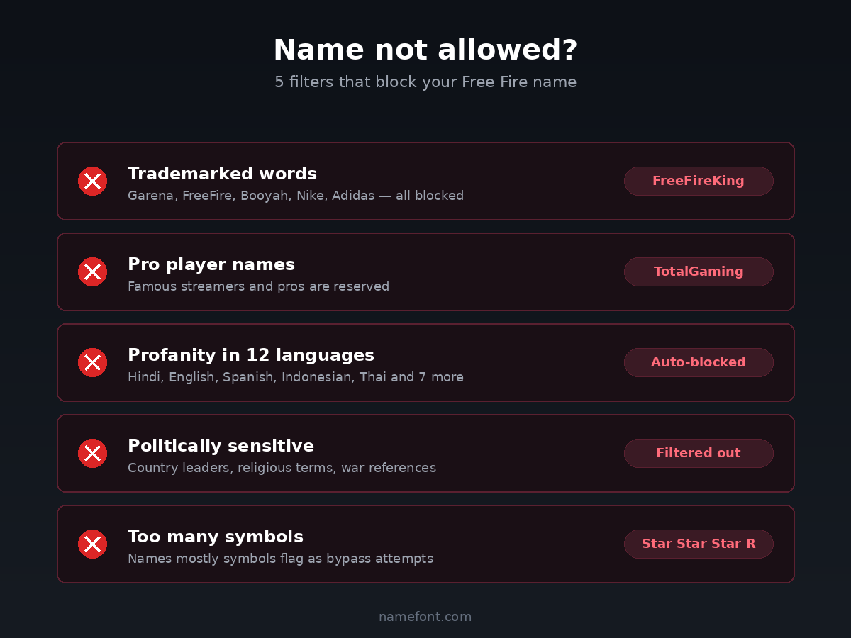 If you typed your favorite streamer's name and it got rejected, this is why. Famous Free Fire players and content creators have their names reserved or blocked.