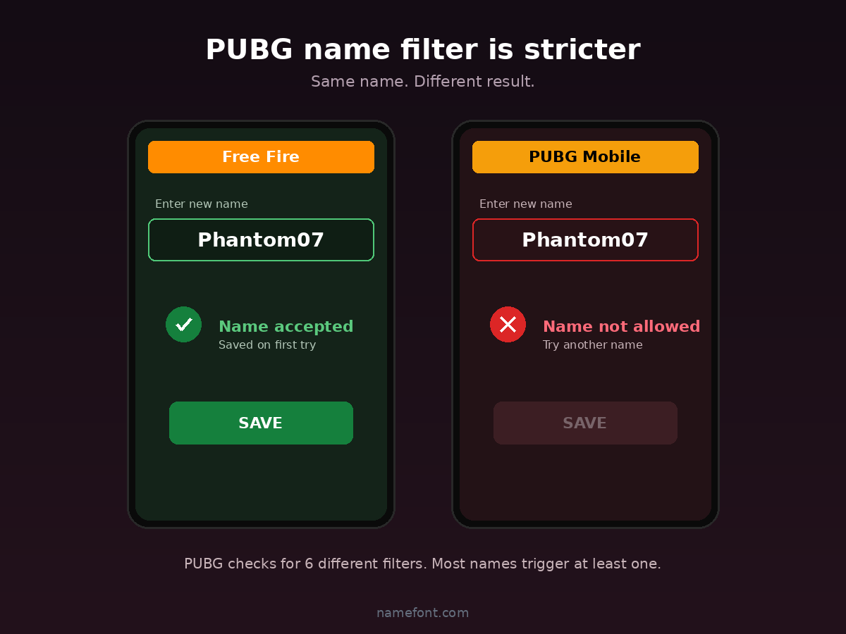 So if your name was getting accepted in Free Fire and rejected in PUBG, it's not a glitch. PUBG just plays by different rules.