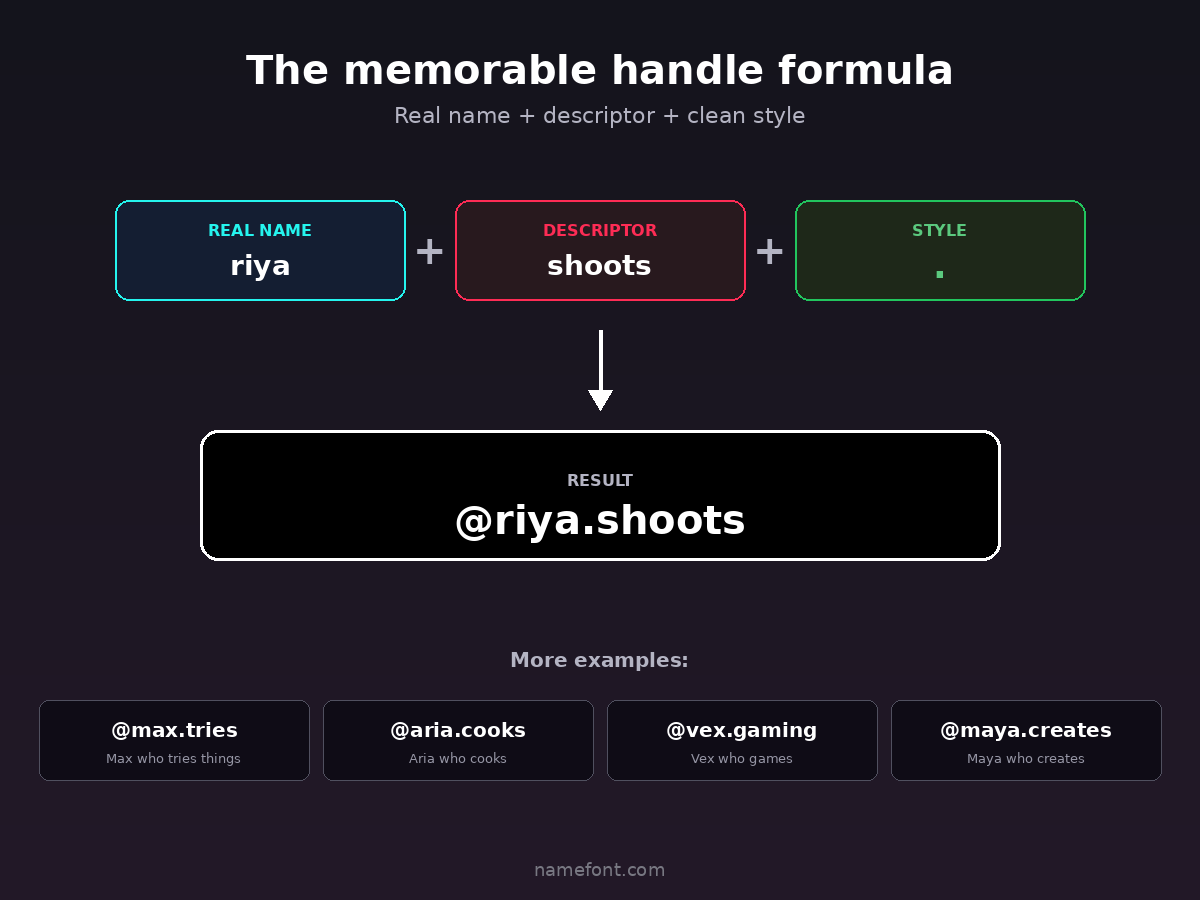 Good username with period: riya.shoots (instantly readable, professional)